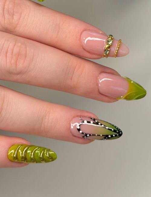 des combinaisons vert + nude + gold